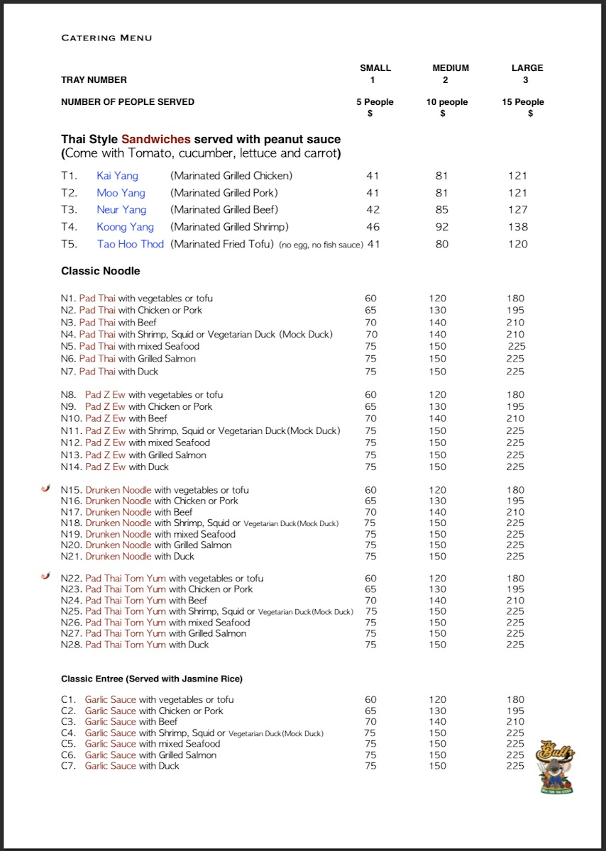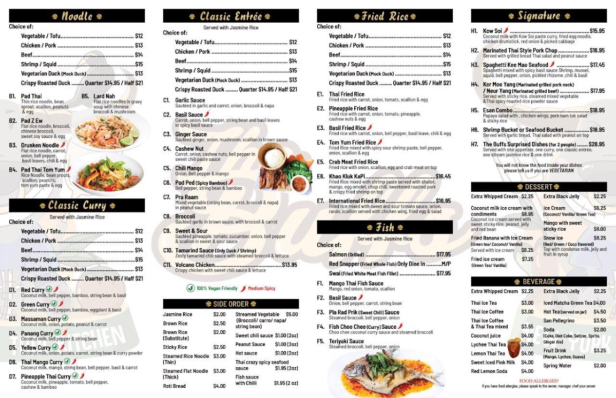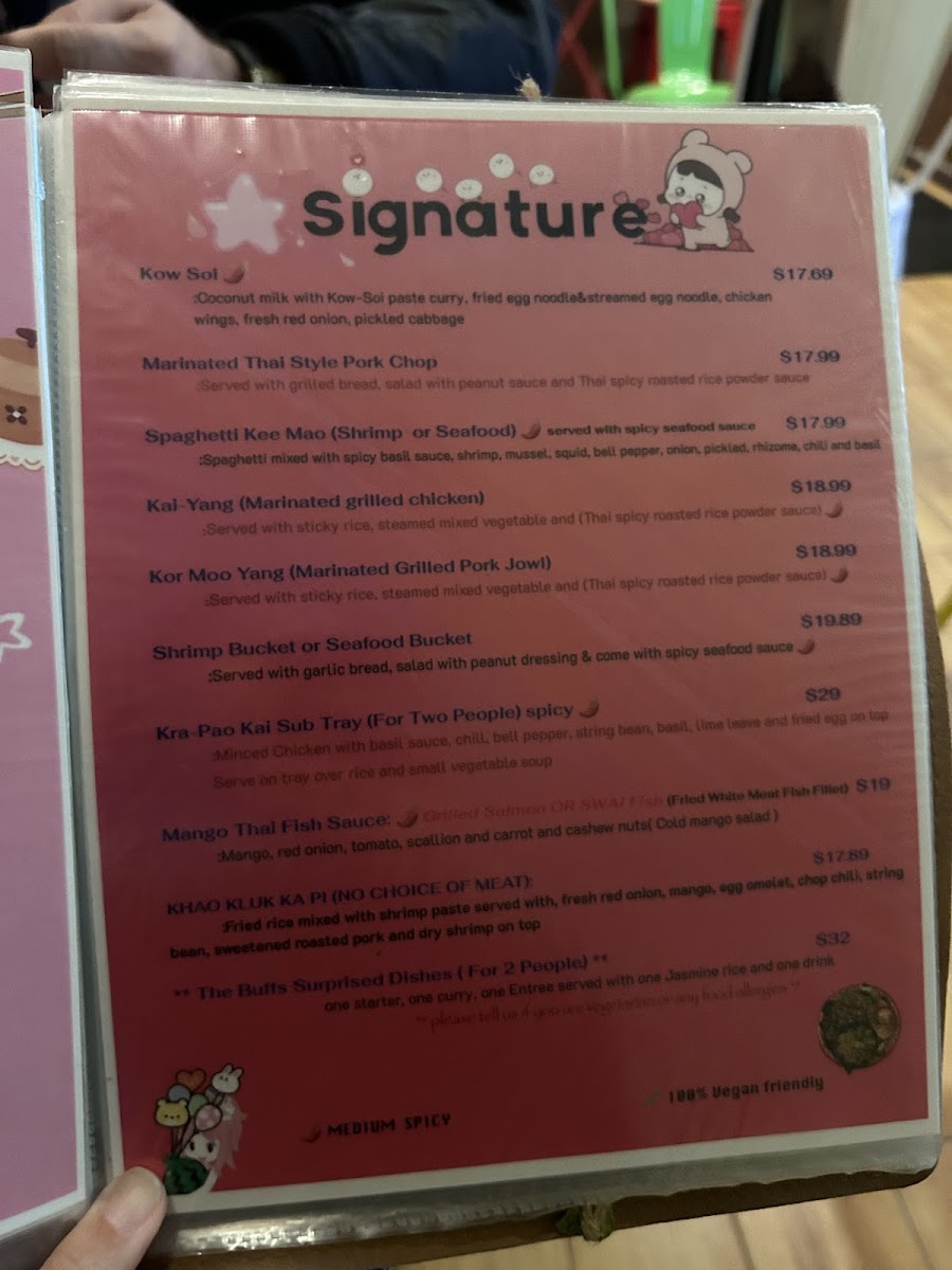 The Buffs offers a thoughtfully curated menu that embraces the essence of traditional Thai cuisine with a casual and approachable vibe. The dishes serve as comforting, flavorful options whether you're looking for a relaxed lunch, a satisfying dinner, or a shared meal with friends. Expect to find well-loved staples like Pad Thai and Drunken Noodles alongside heartier selections such as Panang Curry and Kor Moo Yang, each prepared with fresh ingredients and balanced spice levels.
